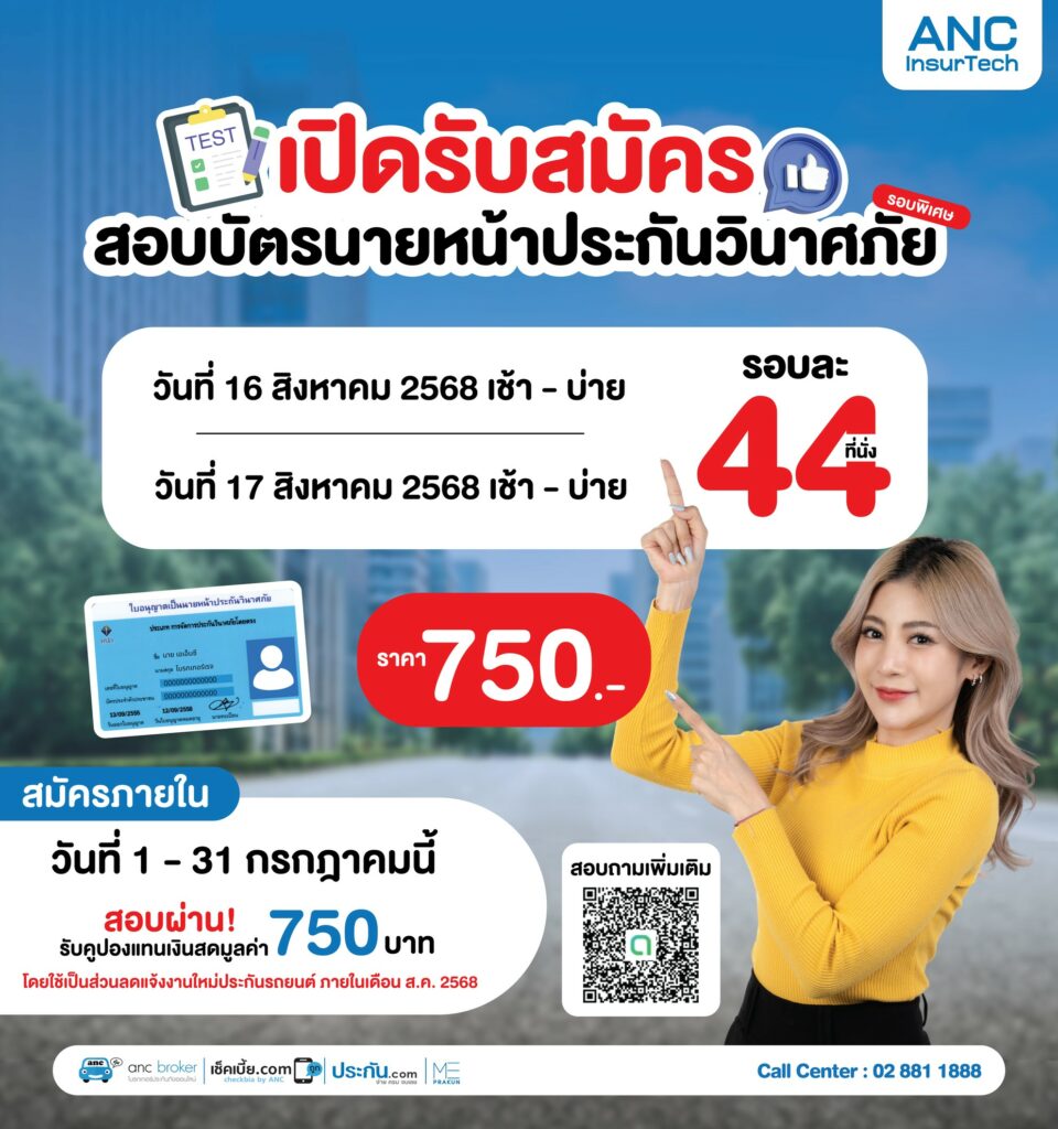 บริษัท เอ เอ็น ซี โบรกเกอร์เรจ จำกัด เปิดโอกาสให้ผู้สนใจเข้าสู่สายอาชีพนายหน้าประกันวินาศภัย ผ่านการสมัครสอบรอบพิเศษ ผู้สอบผ่านสามารถขึ้นทะเบียนและประกอบวิชาชีพนายหน้าประกันวินาศภัยได้ทันที เพื่อสร้างรายได้และเติบโตในธุรกิจประกันภัย